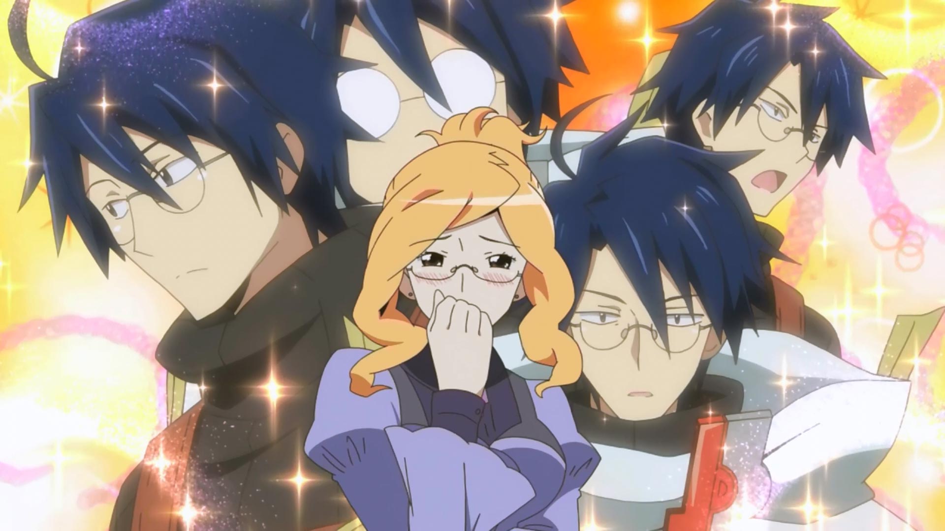Description: A group of people standing next to each other in front of a yellow background with stars and sparkles.