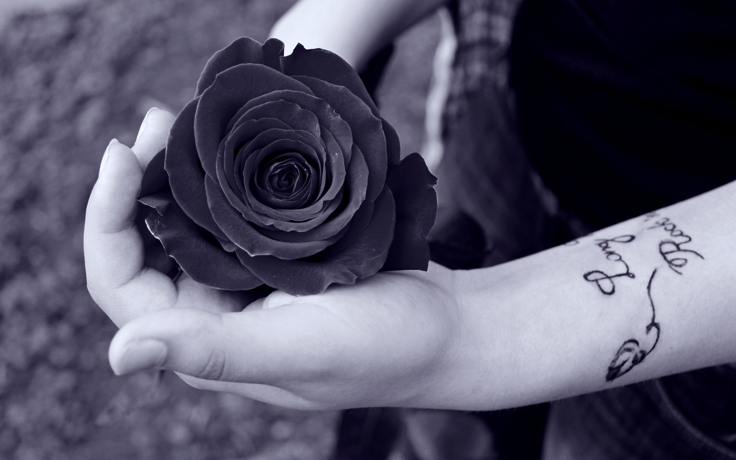 Description: A person holding a flower in their hand with a tattoo on it's arm and a tattoo on the wrist.