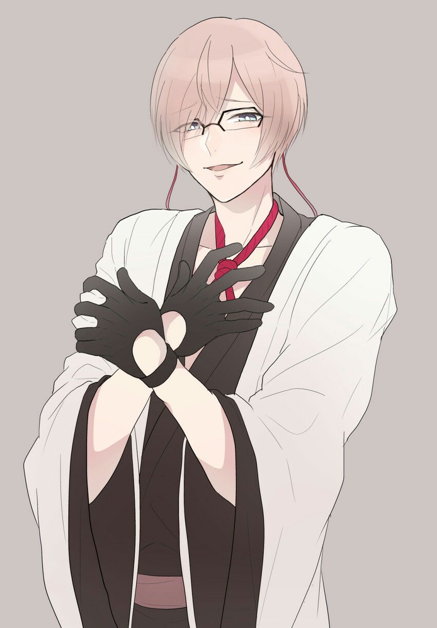 Description: A person with glasses and a white shirt and black gloves on their arms and a red tie on their chest.