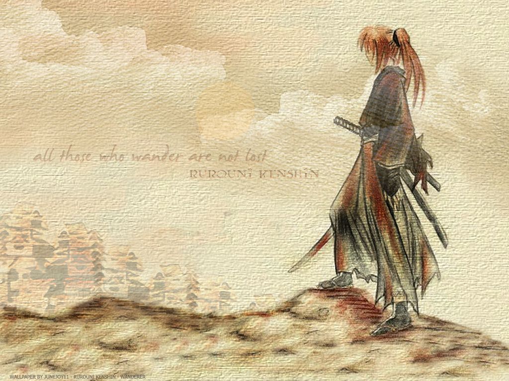 Description: A painting of a person standing on a hill with a sword in his hand and a sky background with clouds.