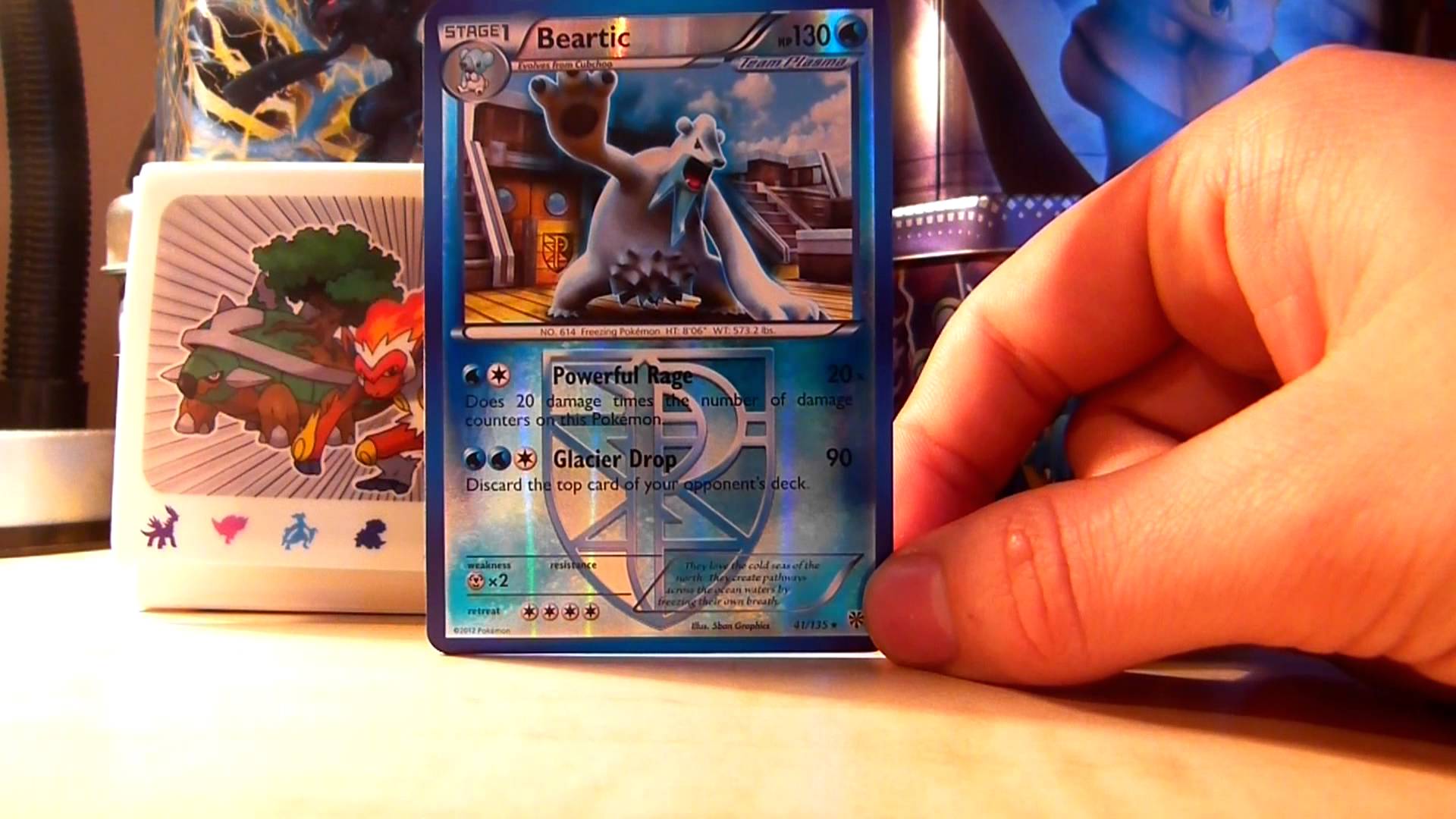Description: A person holding a card in their hand near a table with other items on it and a bag of toys.
