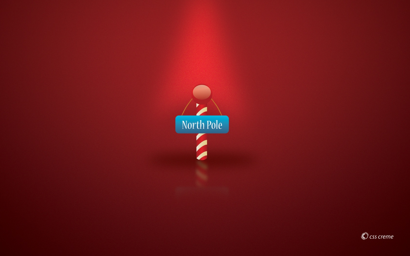 Description: A person holding a sign that says north pole on it and a red background with a light behind it.