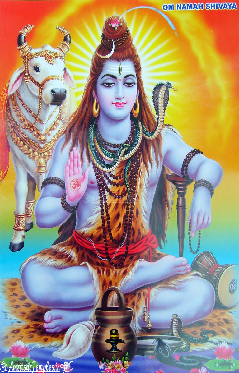 Description: A painting of a person sitting in a lotus position with a cow in the background and a sun above.