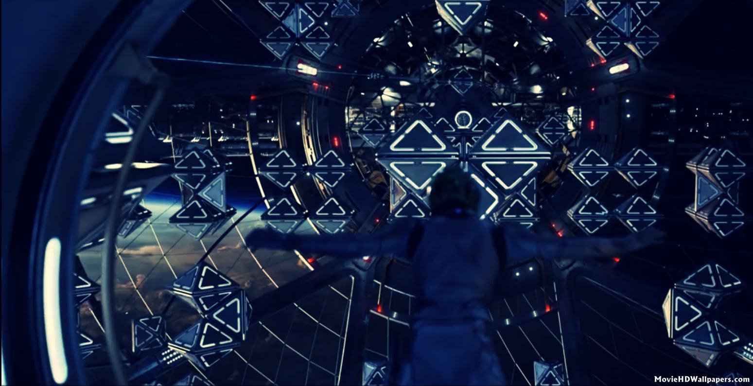 Description: A person standing in front of a mirror with their arms outstretched in the air and a reflection of a building in the background.