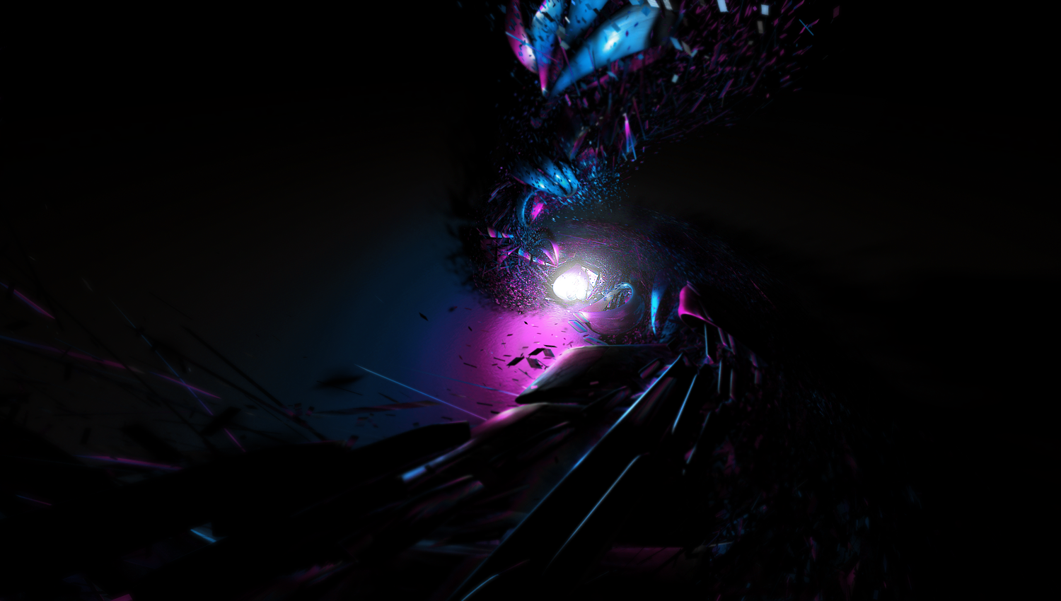 Description: A person is standing in the dark with a flashlight in their hand and a purple light in the background.