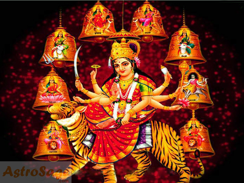 Description: A painting of a person on a tiger with bells and bells around it.