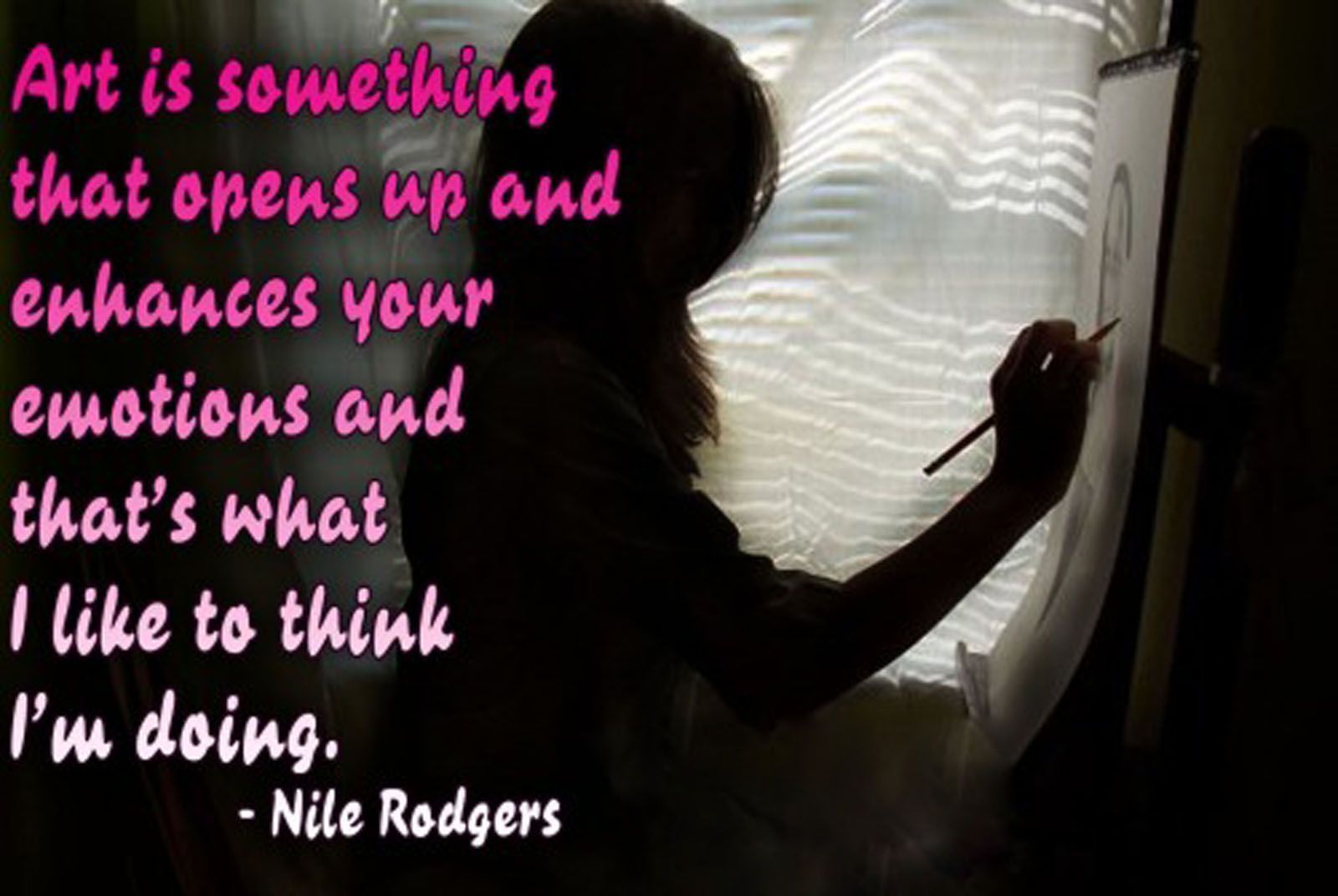 Description: A person writing on a white board with a pink background and a quote from a woman in the background.