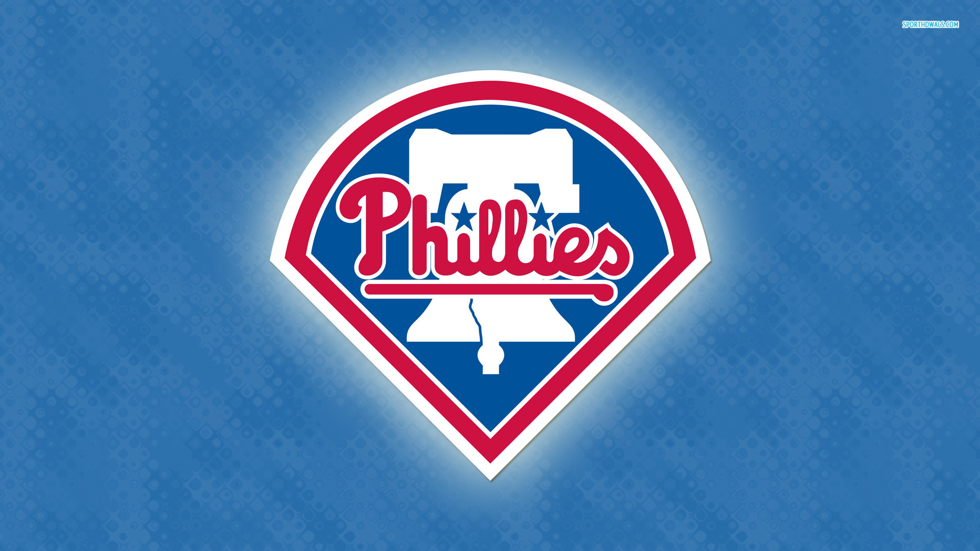 Description: A philadelphia phillies logo on a blue background with a diamond shape in the center of the image and the word phillies on the bottom of the image.