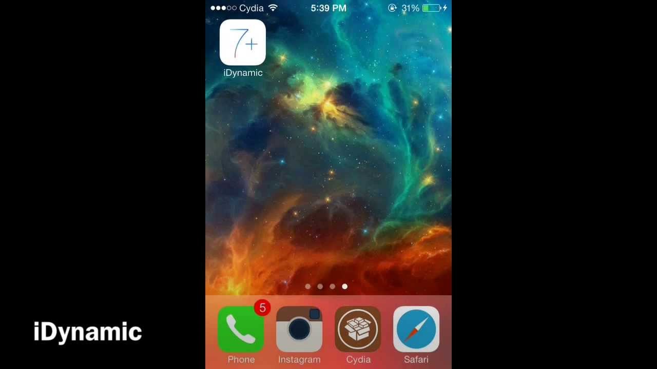 Description: A phone with a picture of a space theme on the screen and the text dynamic on the screen below.