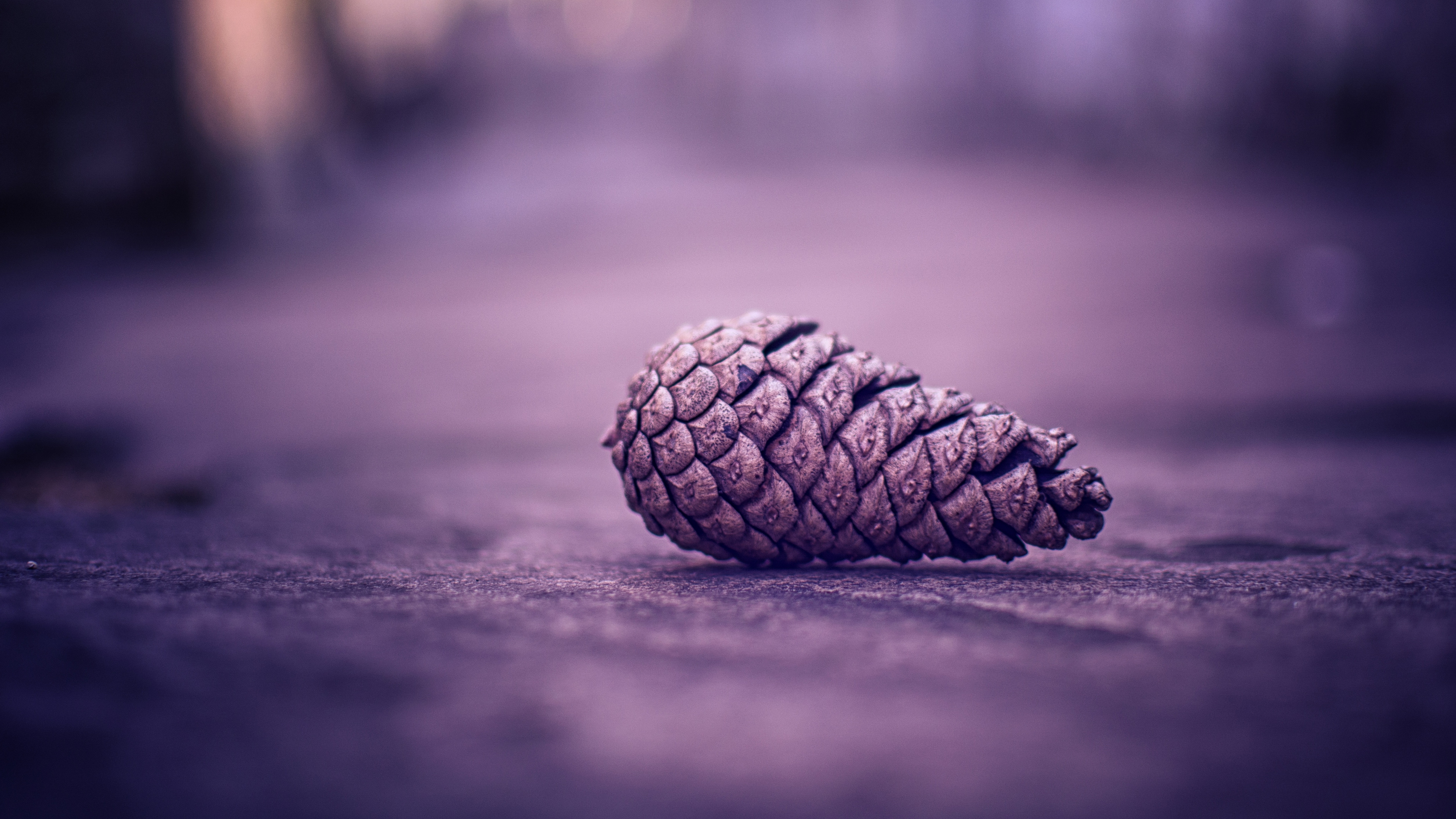 Description: A pine cone sitting on the ground in the middle of the road.