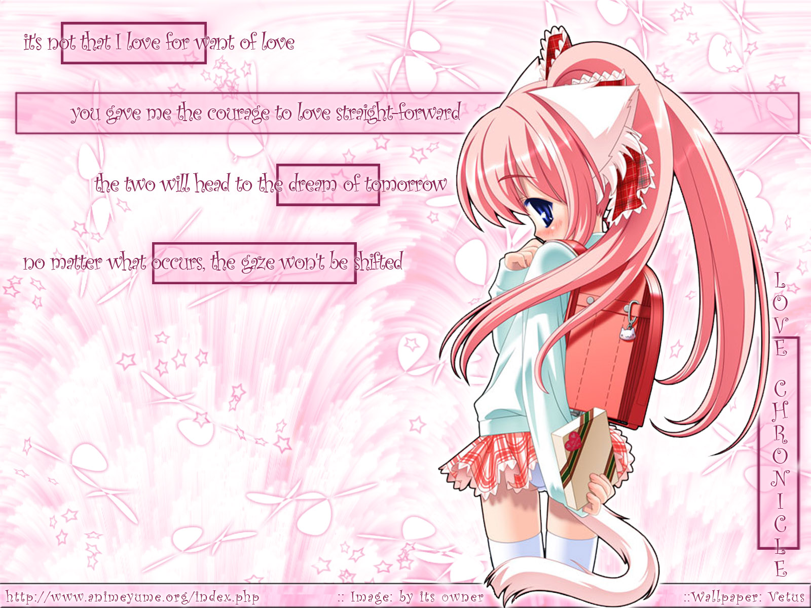 Description: A pink anime girl with long hair and a pink dress with a pink background and a pink background with a pink background and a pink background with a white border.