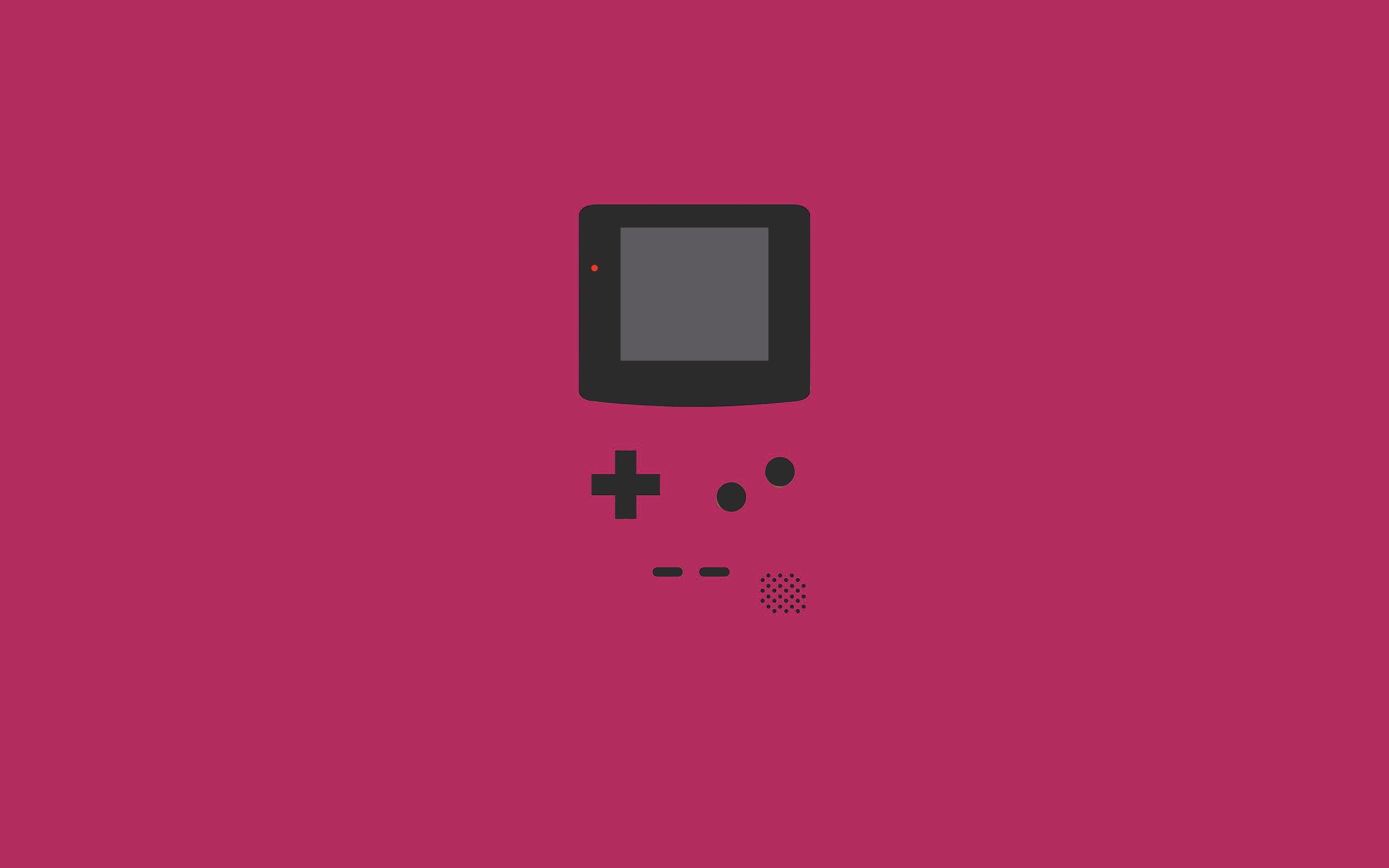 Description: A pink background with a black and white gameboy on it's face and a cross on the screen.