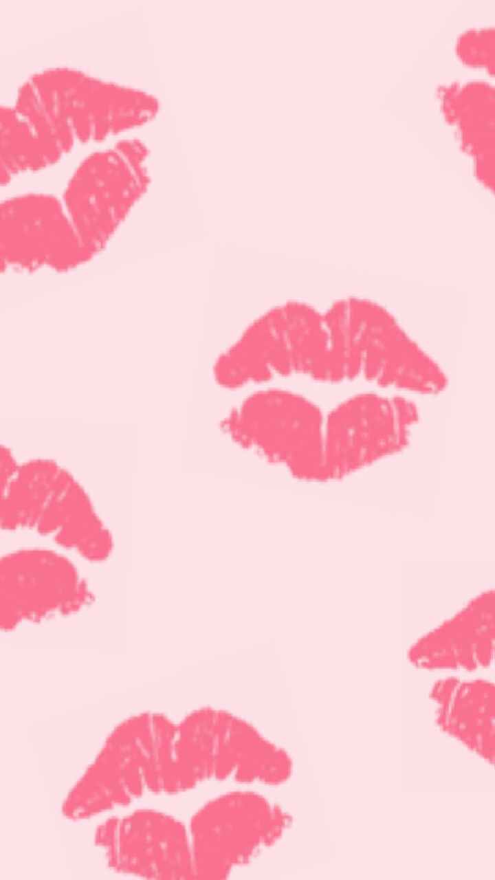 Description: A pink background with lipstick kisses drawn on it's lips in a pattern on a pink background with a white background.