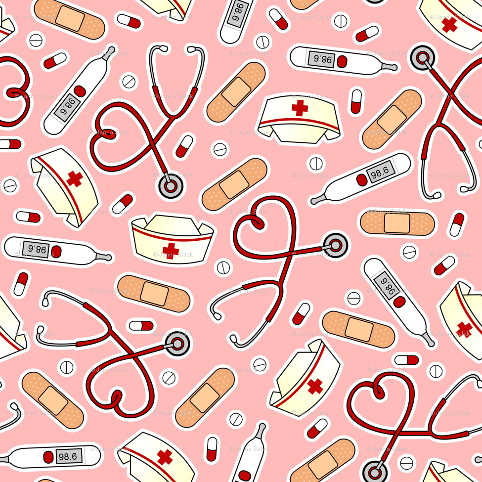 Description: A pink background with medical items and a stethoscope on it.