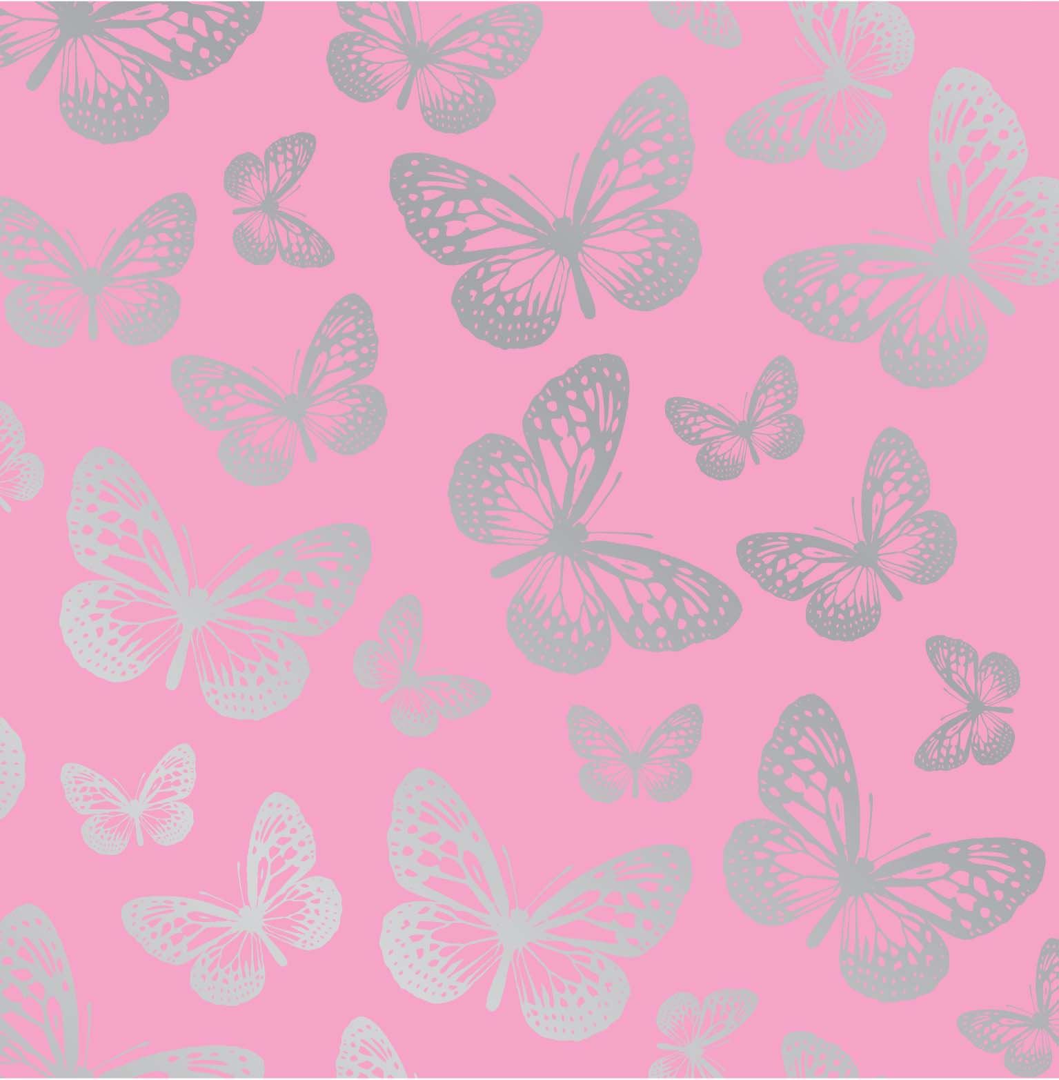 Description: A pink background with silver butterflies on it and a pink background with silver butterflies on it and a pink background with silver butterflies on it.