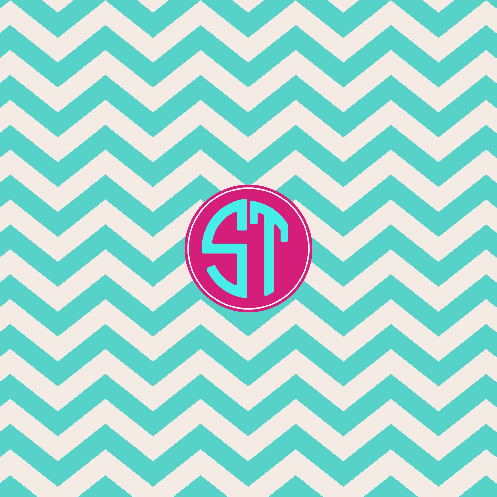 Description: A pink and blue monogrammed wallpaper with a monogrammed circle on it's center.