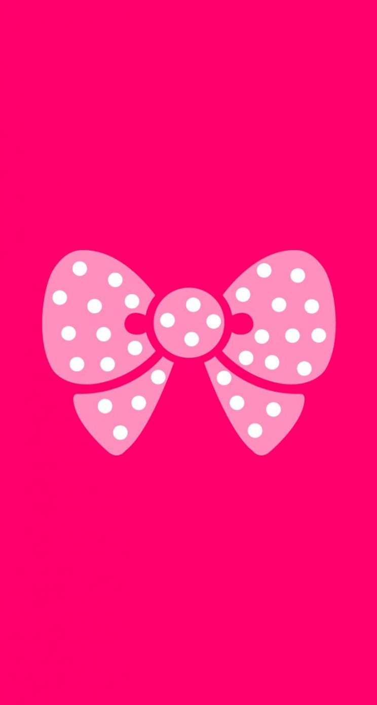 Description: A pink bow with white dots on it on a pink background with a pink background and a pink background.