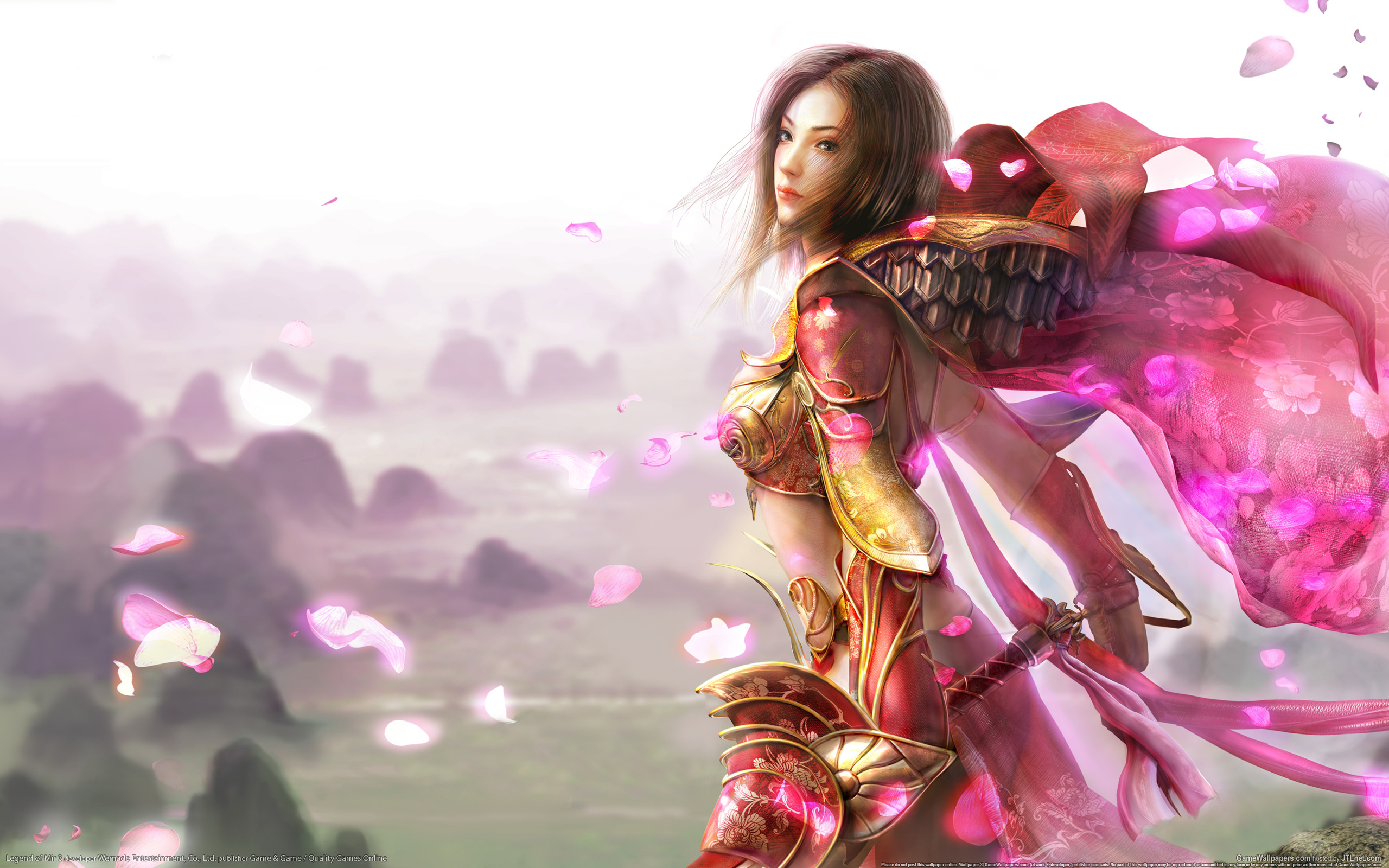 Description: A woman in a pink dress holding a pink umbrella and a pink flower in her hand and a pink background.