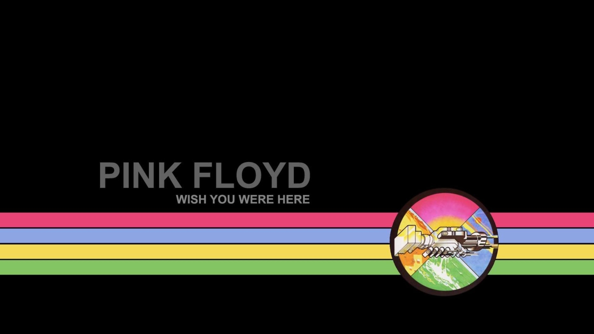 Description: A pink floyd album cover with a rainbow stripe and a black background with a pink floyd logo on it.