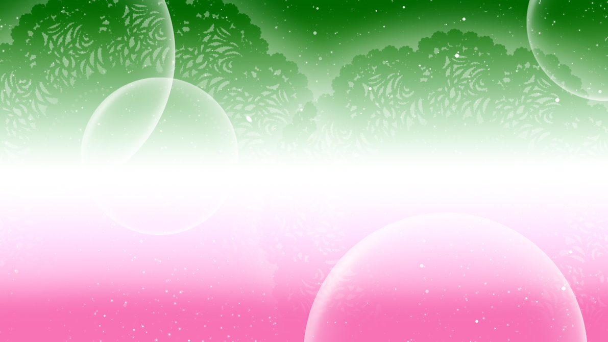 Description: A pink and green background with bubbles and stars in the sky and a green and pink background with bubbles.
