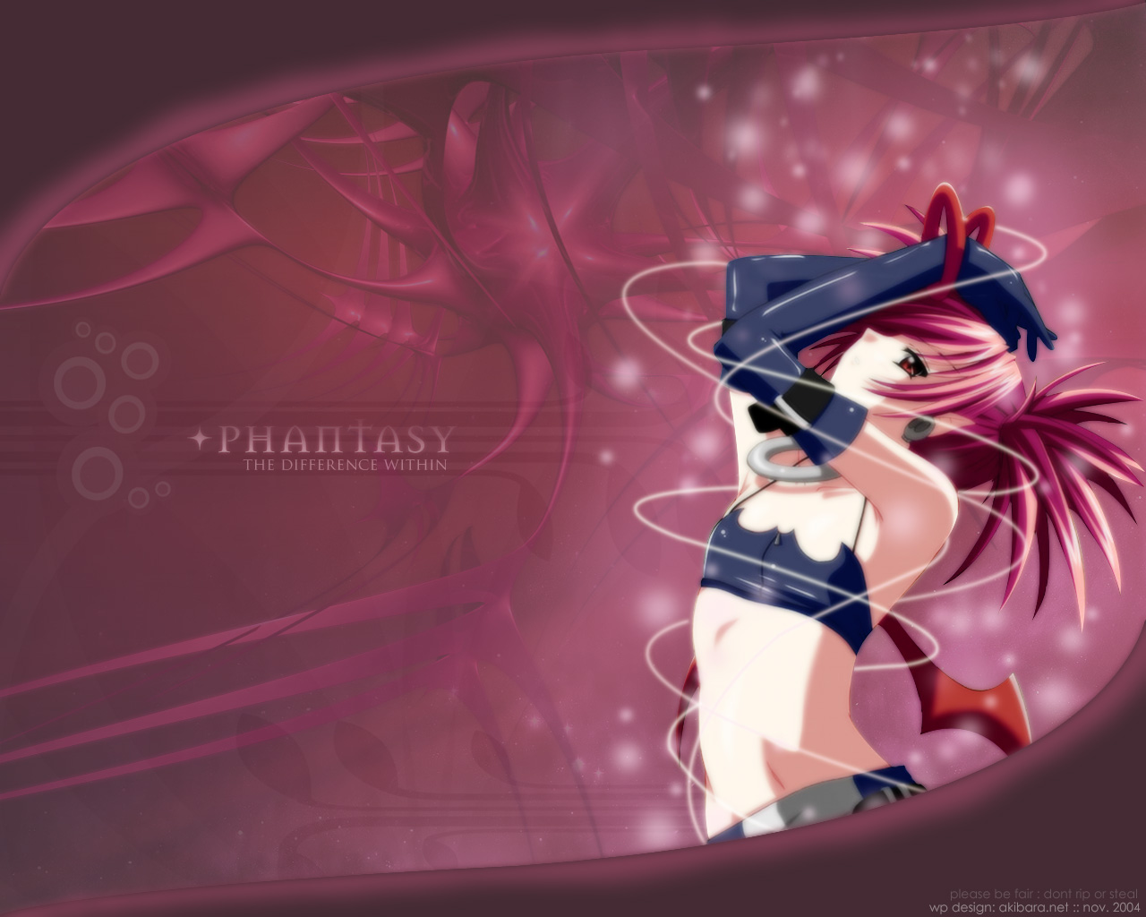 Description: A anime character with pink hair and a hat on her head.