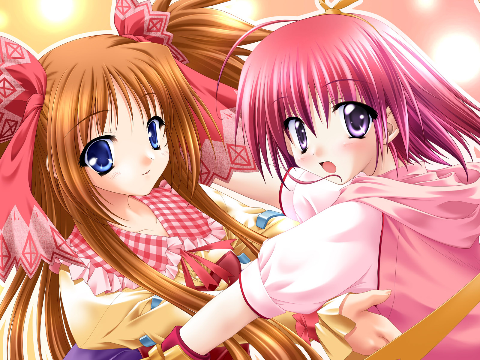 Description: Two anime girls with pink hair and blue eyes.