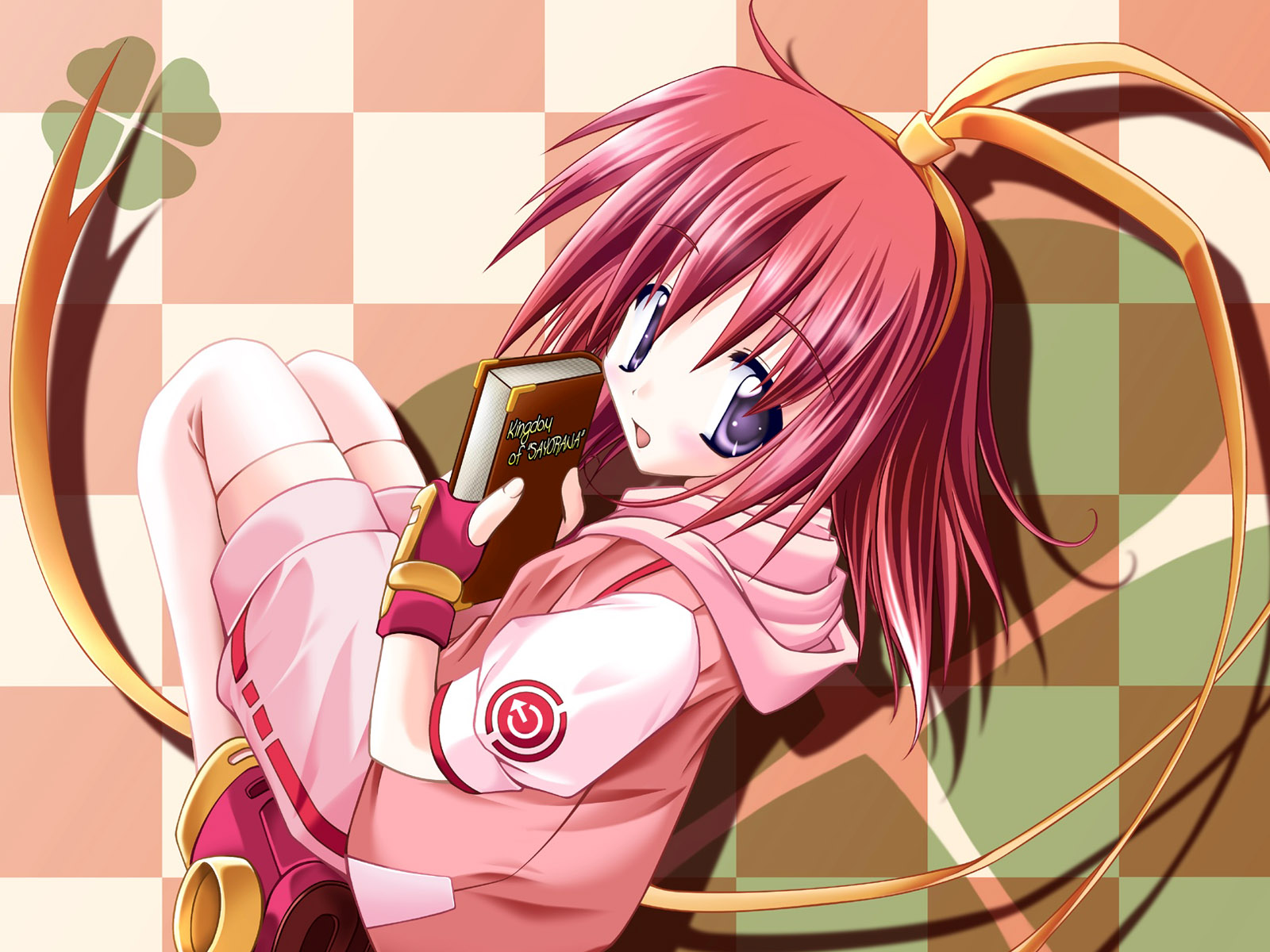 Description: A girl with pink hair is sitting on a chair and holding a cell phone in her hand and looking at the screen.