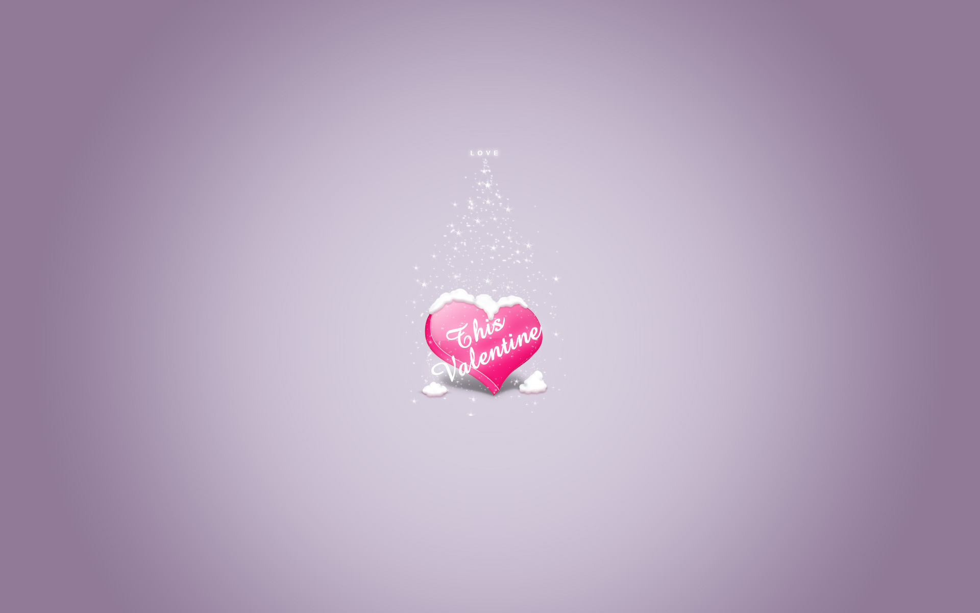 Description: A pink heart with a message on it on a purple background with snow flakes and stars around it.