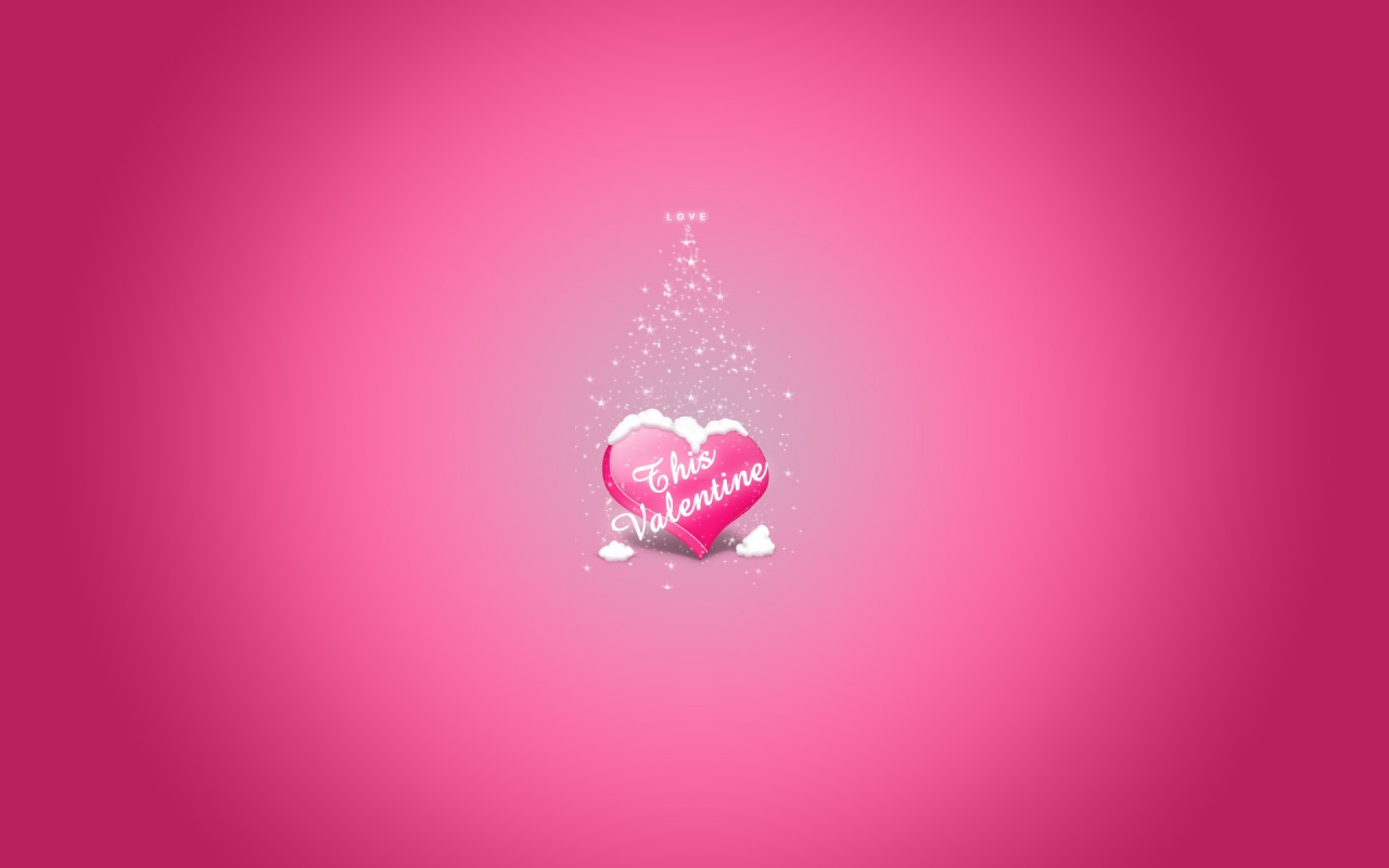 Description: A pink heart with a message on it and a star above it on a pink background with a white heart.