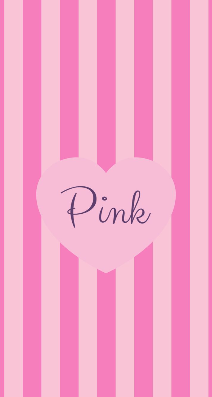 Description: A pink heart with the word pink on it in a pink striped background with a pink heart on the bottom.