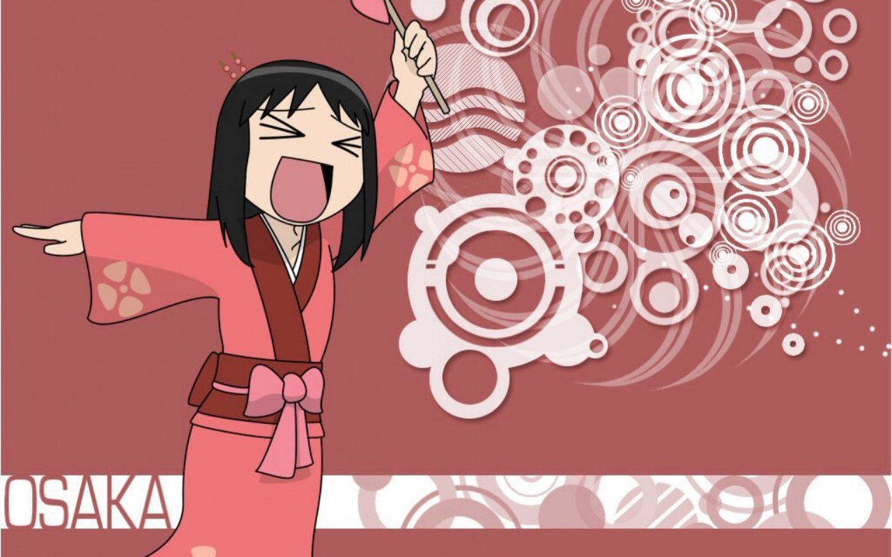 Description: A woman in a pink kimono holding a pink umbrella and a pink background with circles and circles on it.
