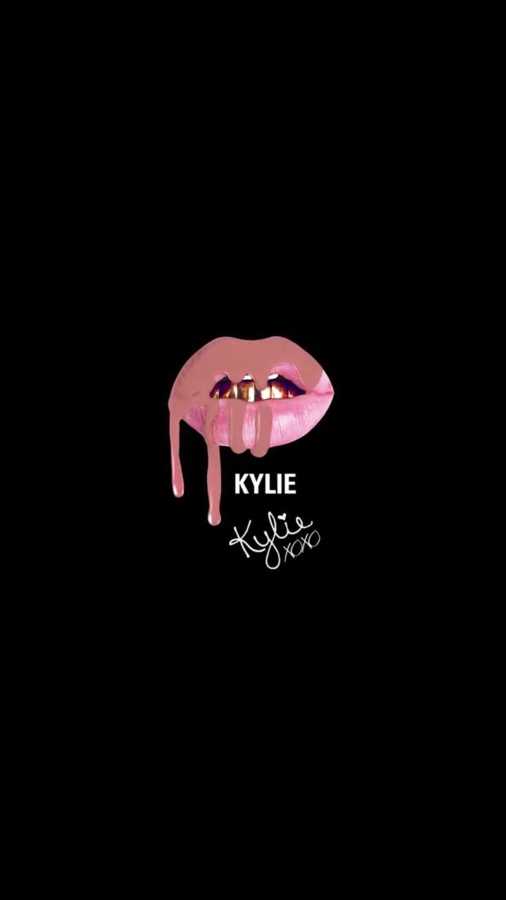 Description: A pink lip with dripping liquid on it and a black background with the words kylie written on it.