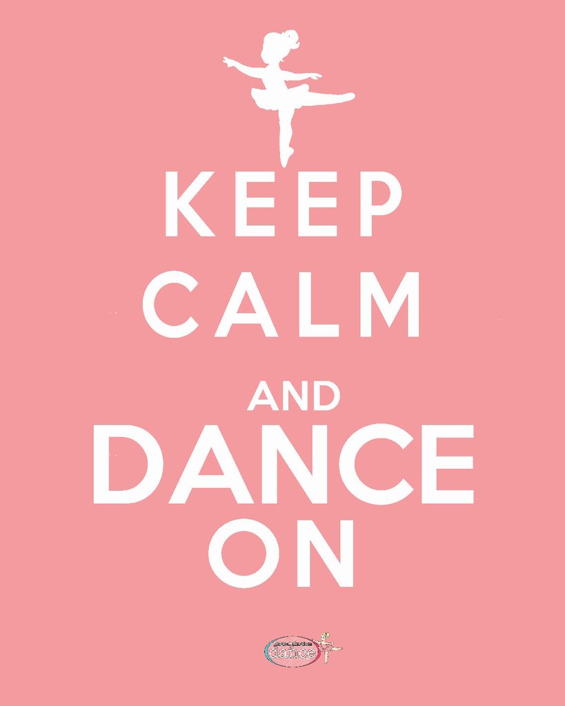 Description: A pink poster with a ballet ballerina on it's back and the words keep calm and dance on.