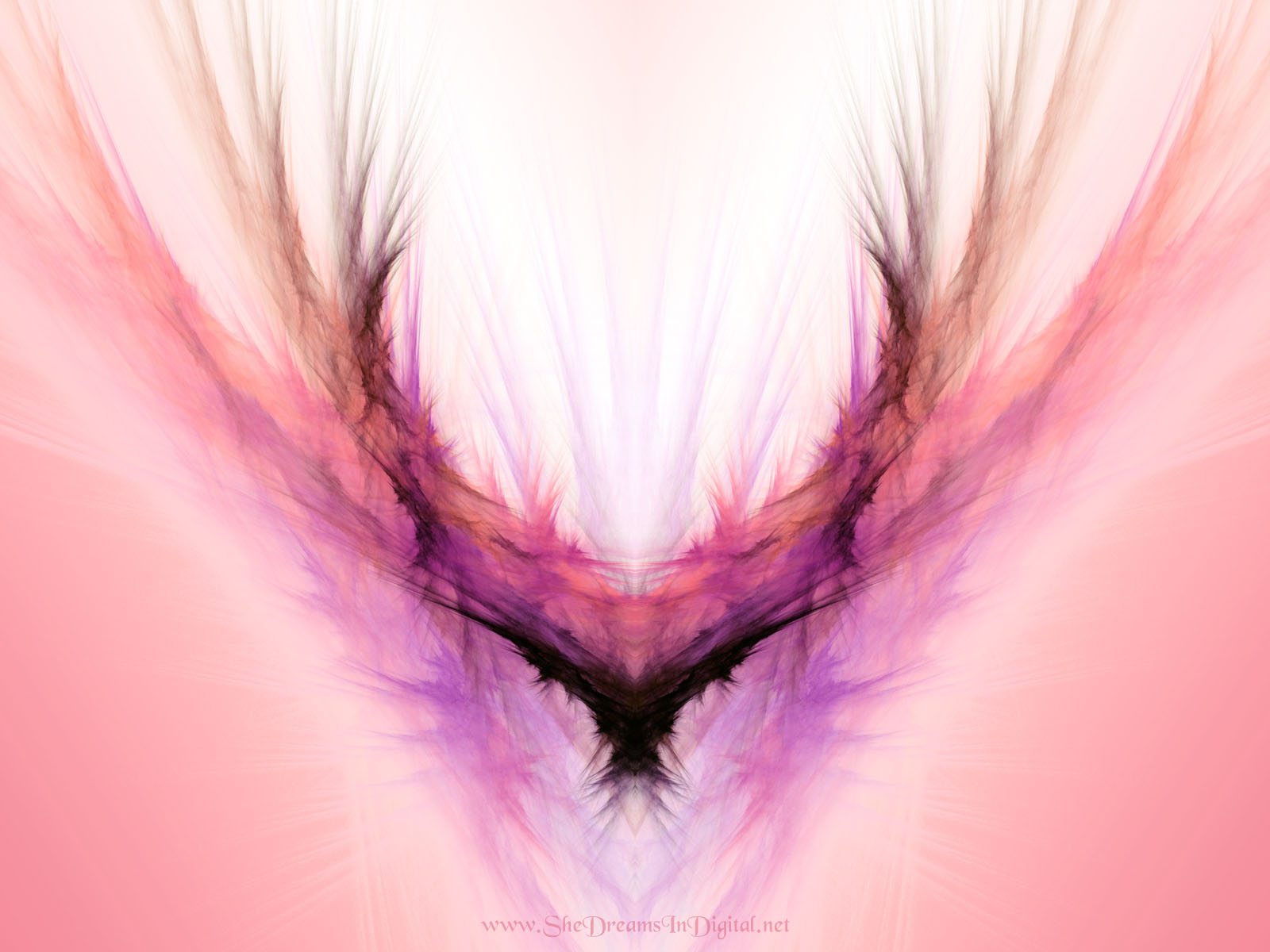 Description: A pink and purple abstract background with a bird's wing in the center of the image.