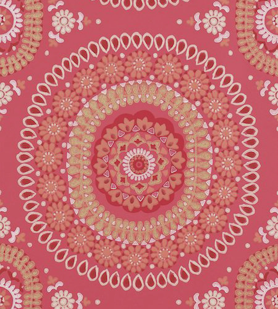 Description: A pink and red circular design with white circles on it's center and center circle on the center.