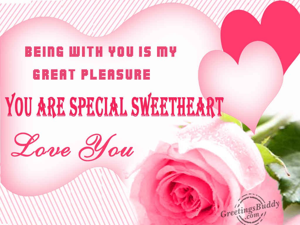 Description: A pink rose with a heart on it and a message to someone special sweetheart love you on valentine's day.