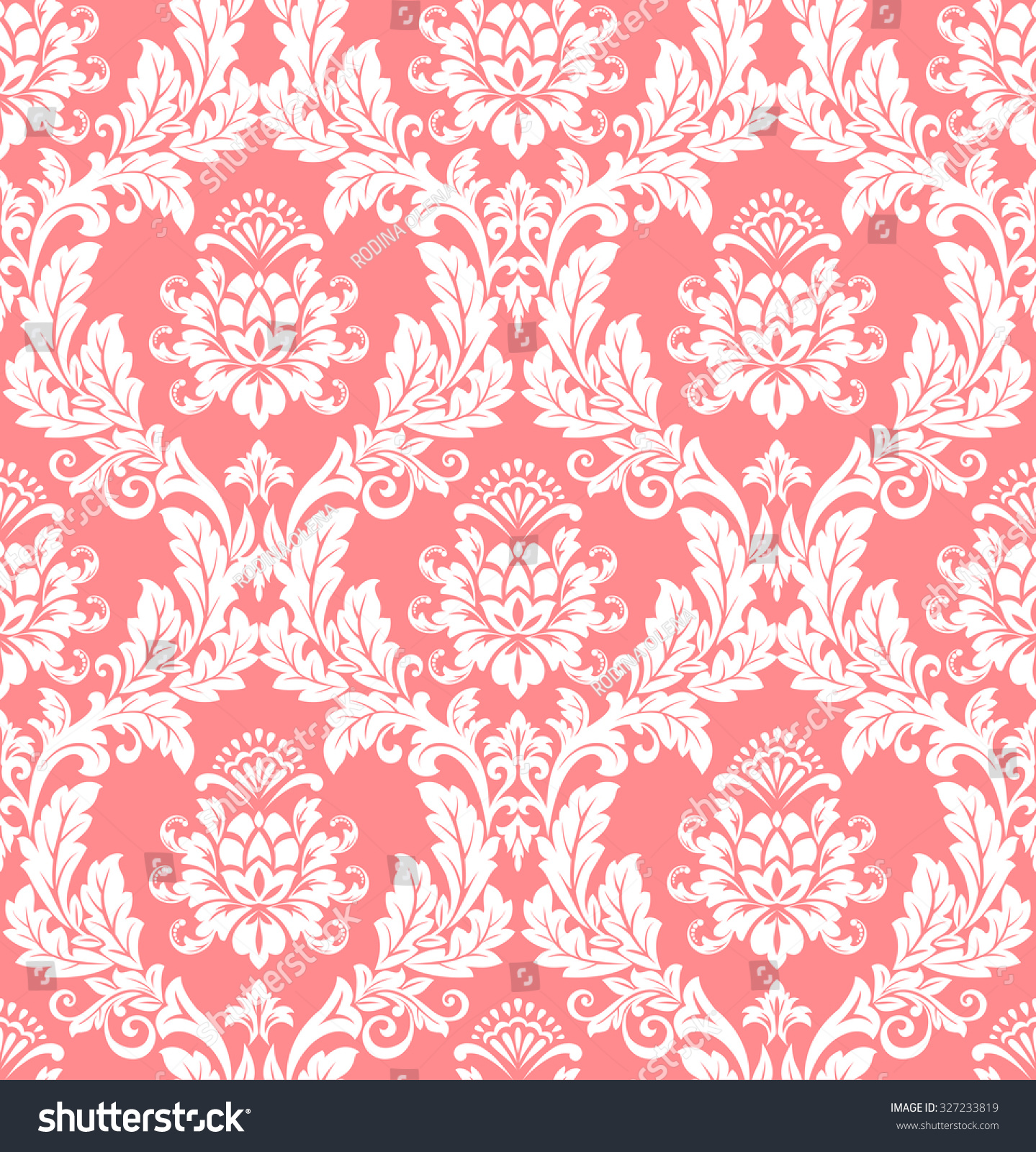 Description: A pink and white floral wallpaper pattern with a floral design on it's side.