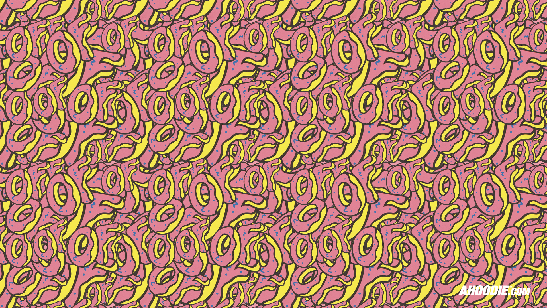 Description: A pink and yellow pattern with a black background and a yellow border with the words.