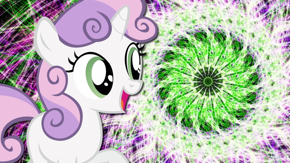 Description: A pinkie pony with a green and purple background and a green and white swirl around it's face.