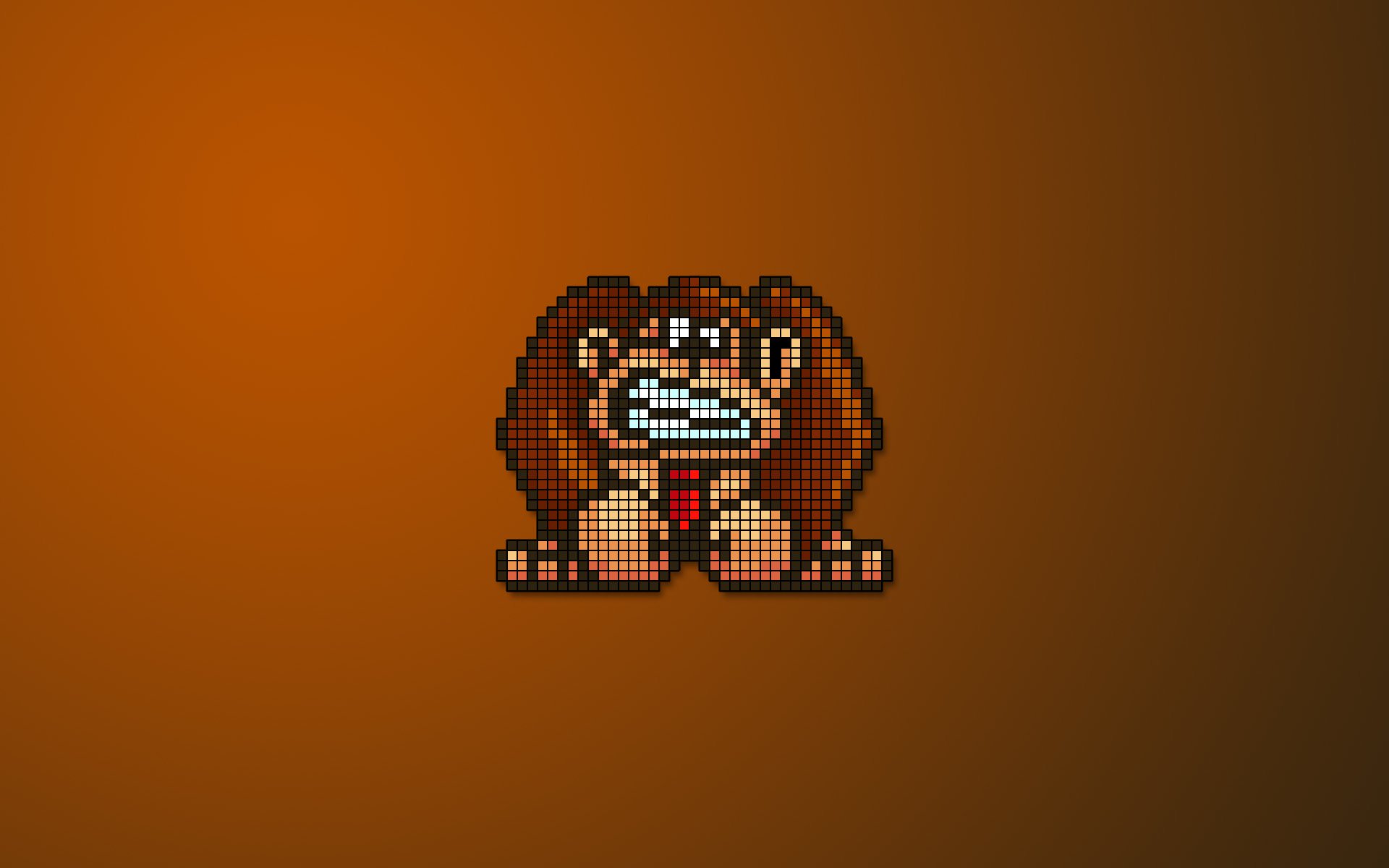 Description: A pixellated image of a monkey with a tie on it's neck and a red tie on its neck.
