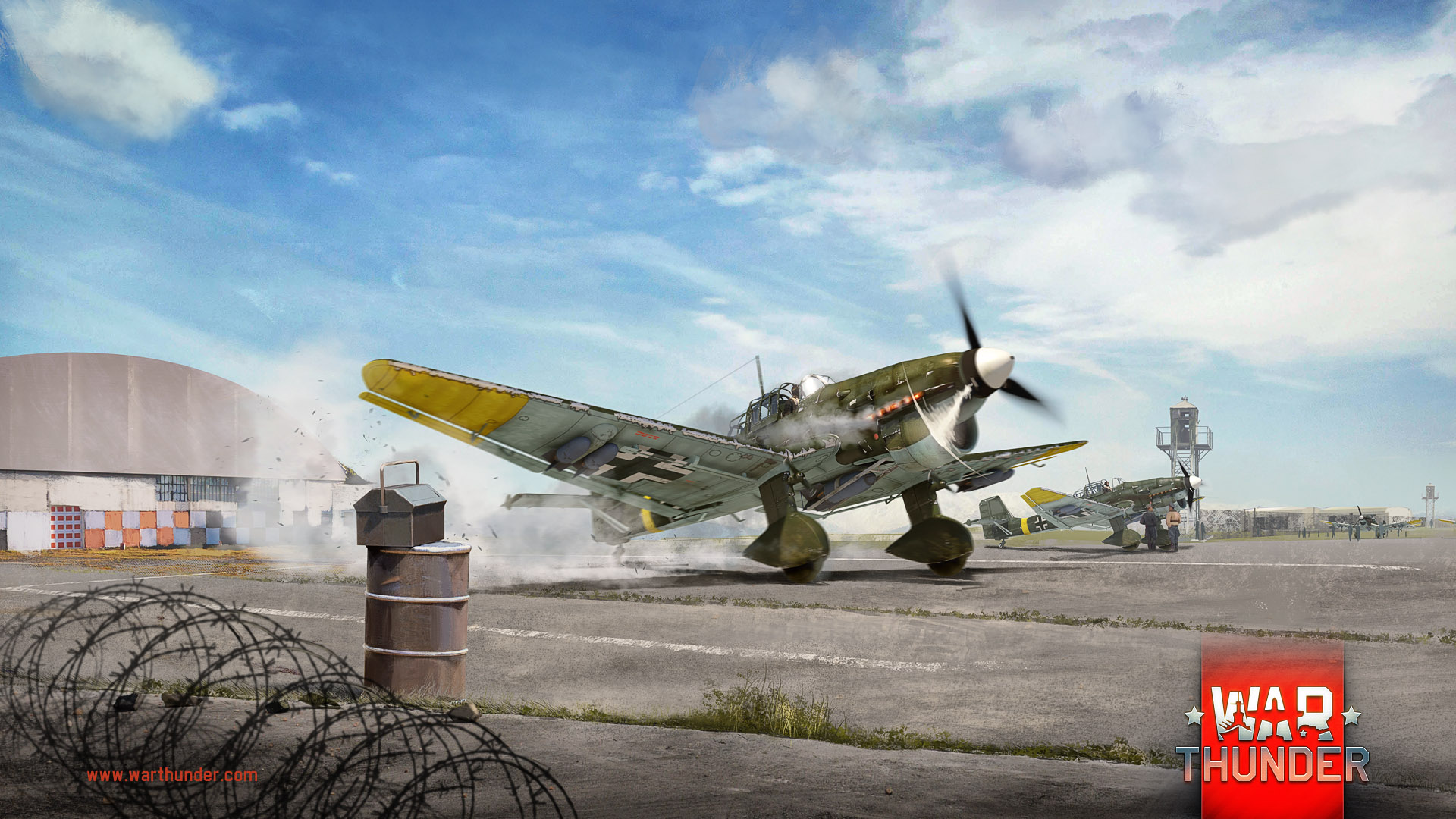 Description: A painting of a plane on the ground with barbed wire around it and a building in the background with a blue sky.