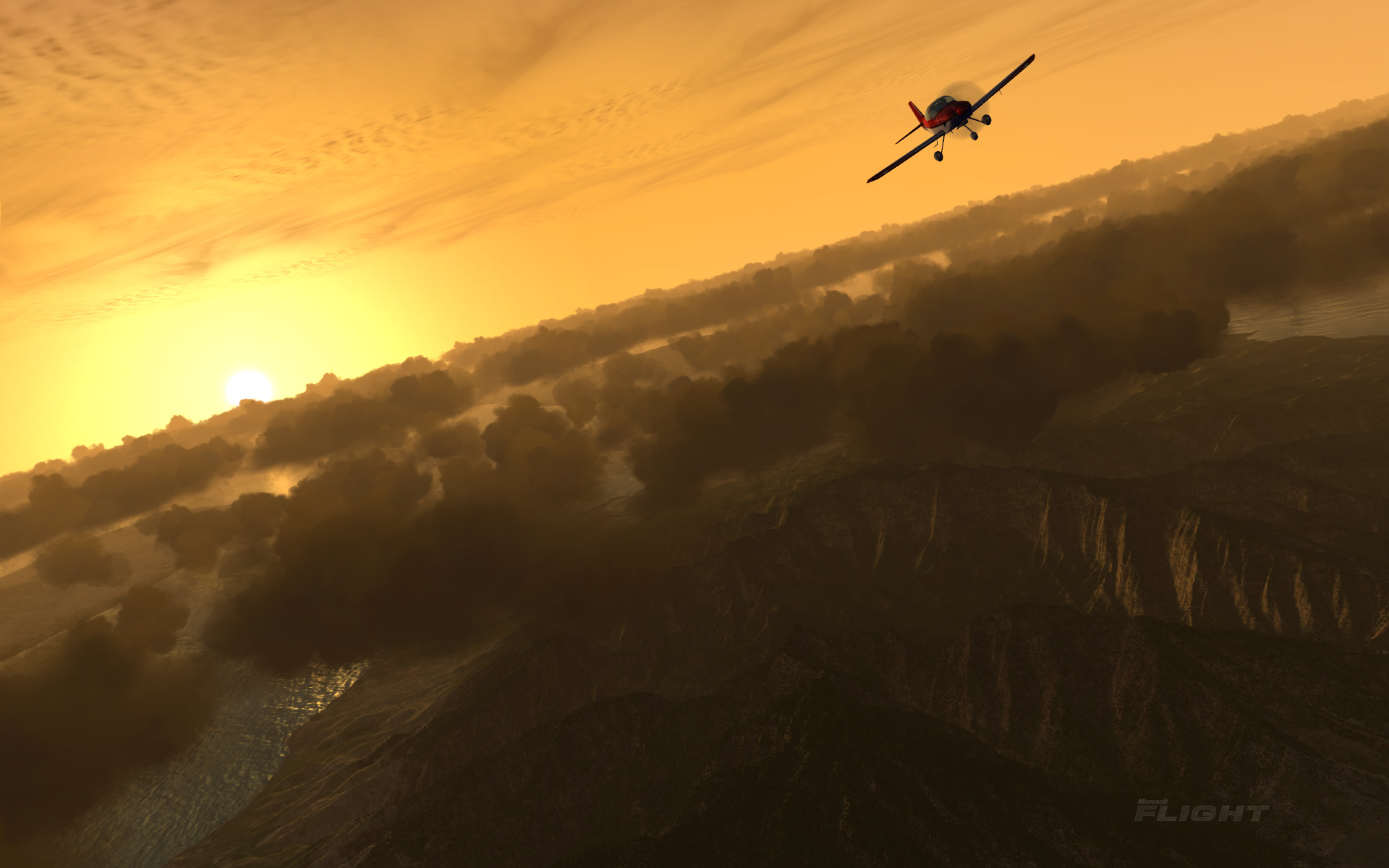 Plane mountain sunset clouds volumetric - free wallpaper for desktop | 5desktop.com