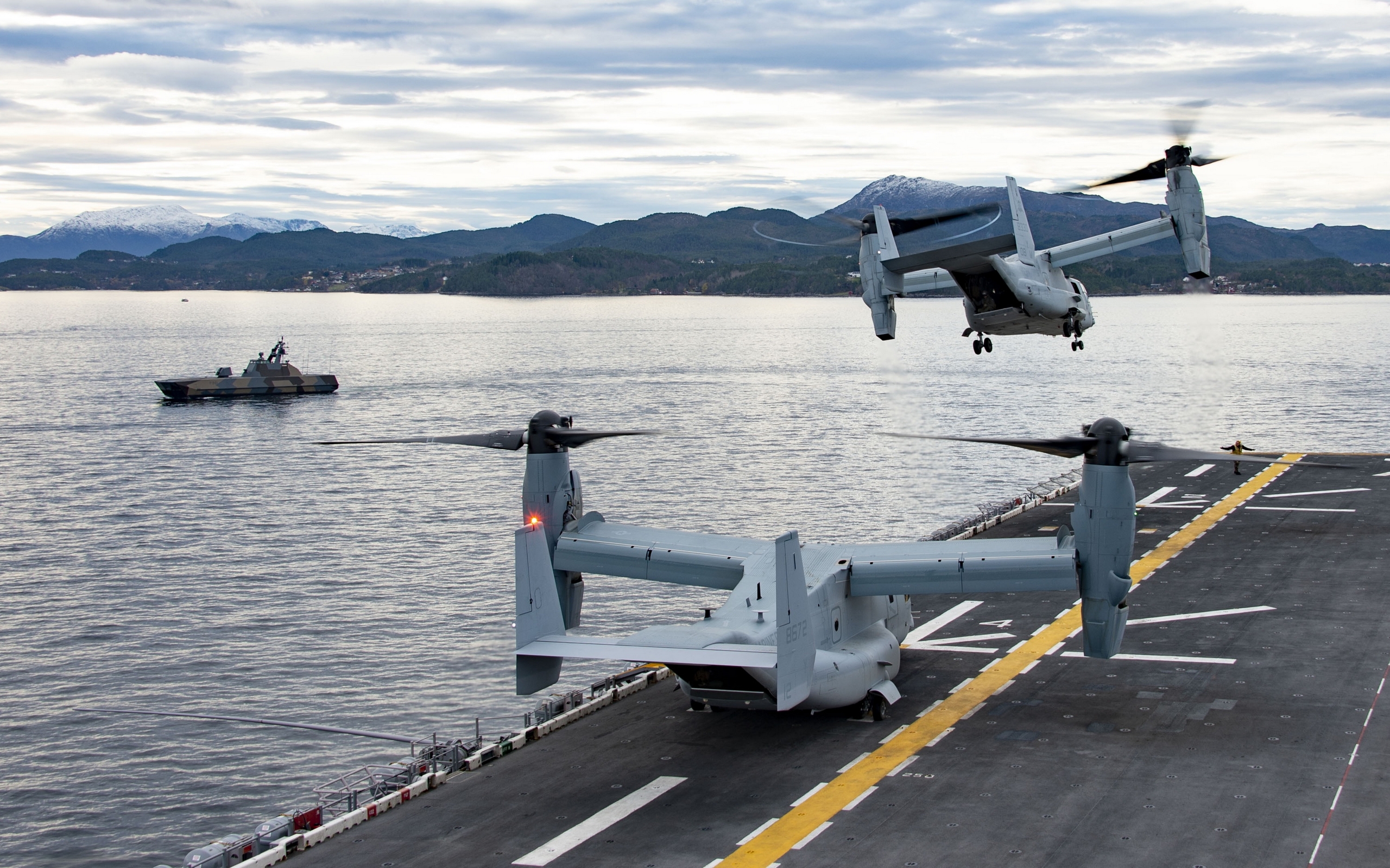 Description: A plane is flying over a ship in the water and a boat is in the water behind it and a boat is in the water.