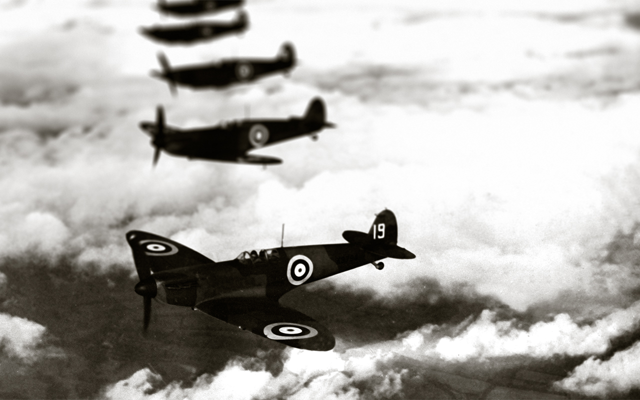 Description: A group of planes flying through the sky above clouds and clouds in the sky.