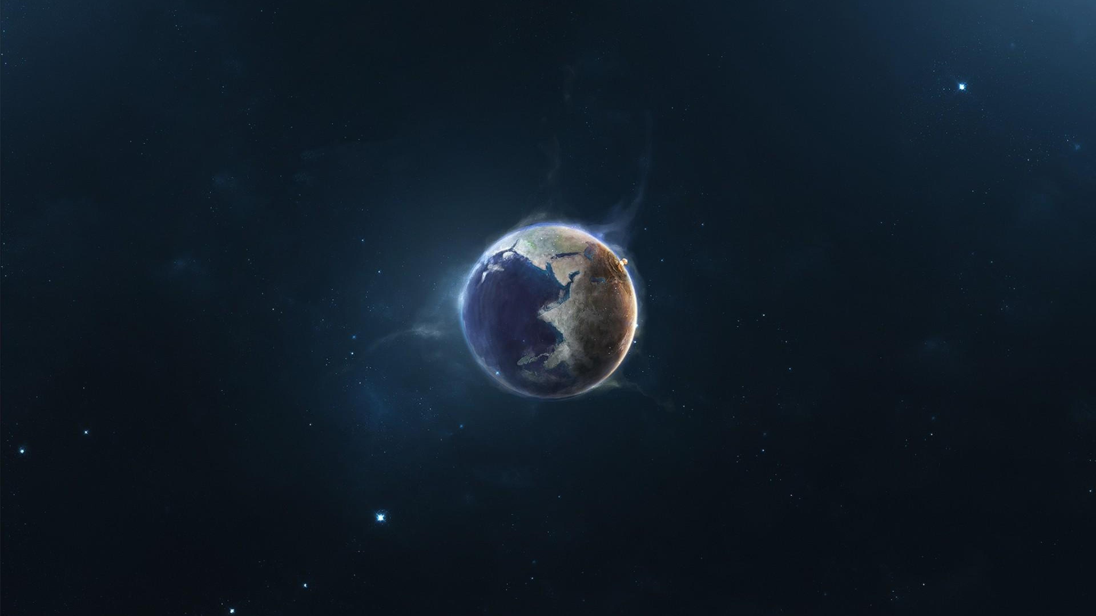 Description: A picture of a planet in the dark sky with stars around it and a bright light shining on the planet.