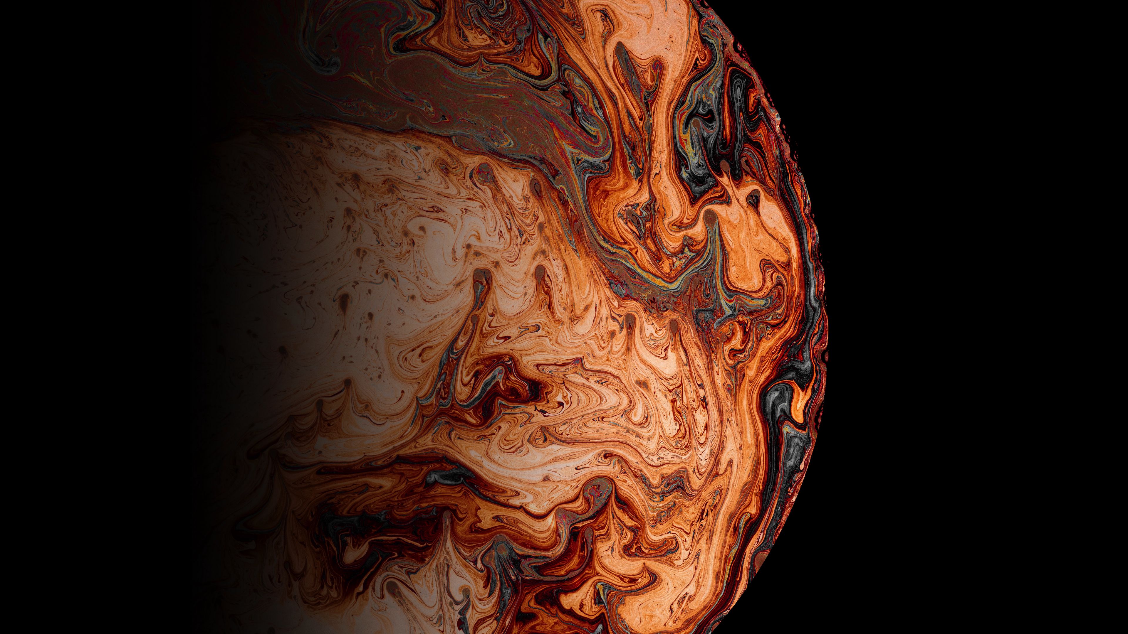 Description: A close up of a planet with a black background and a red and black swirl on it's surface.
