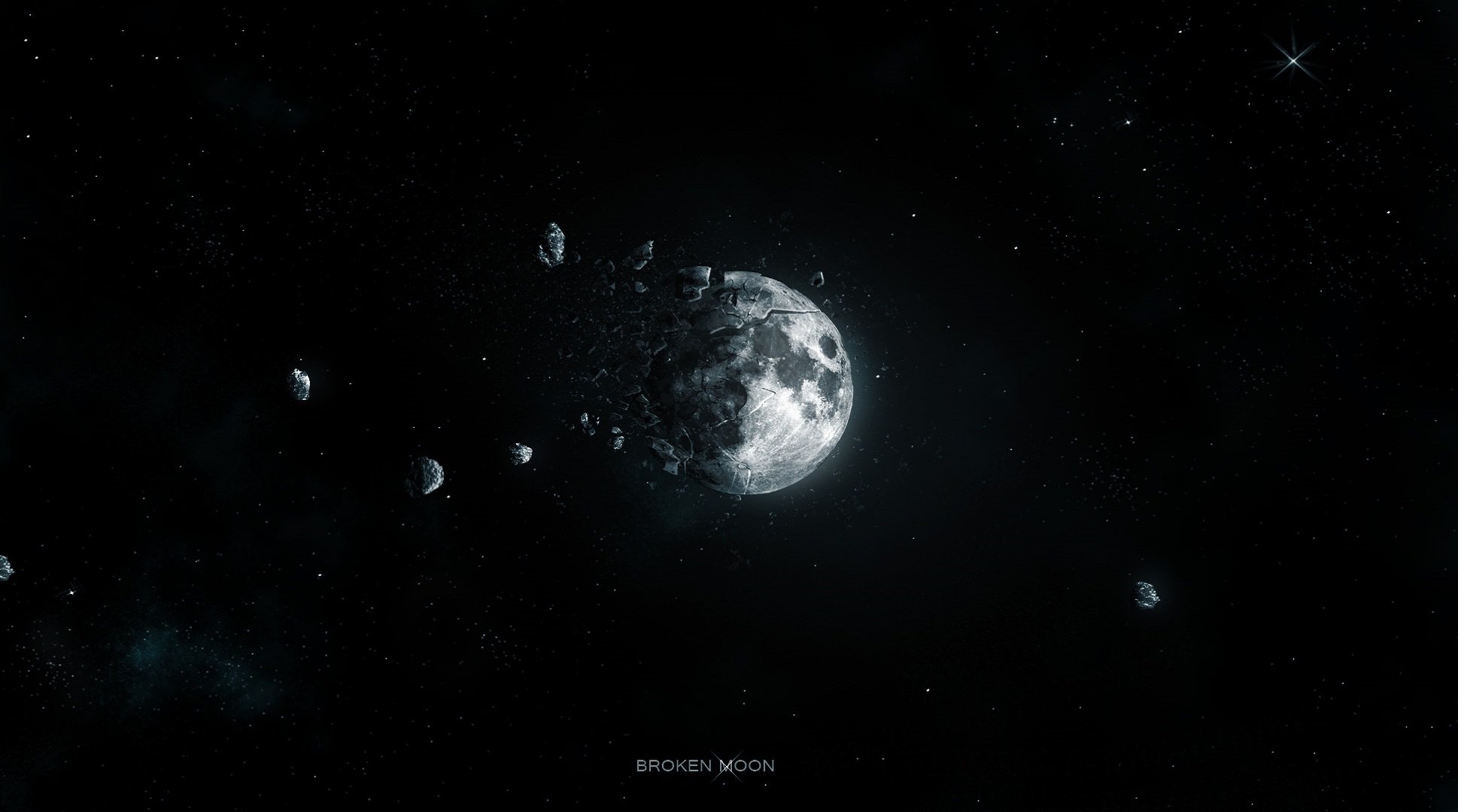 Description: A group of planets in the dark sky with stars around them and a moon in the middle of the picture.