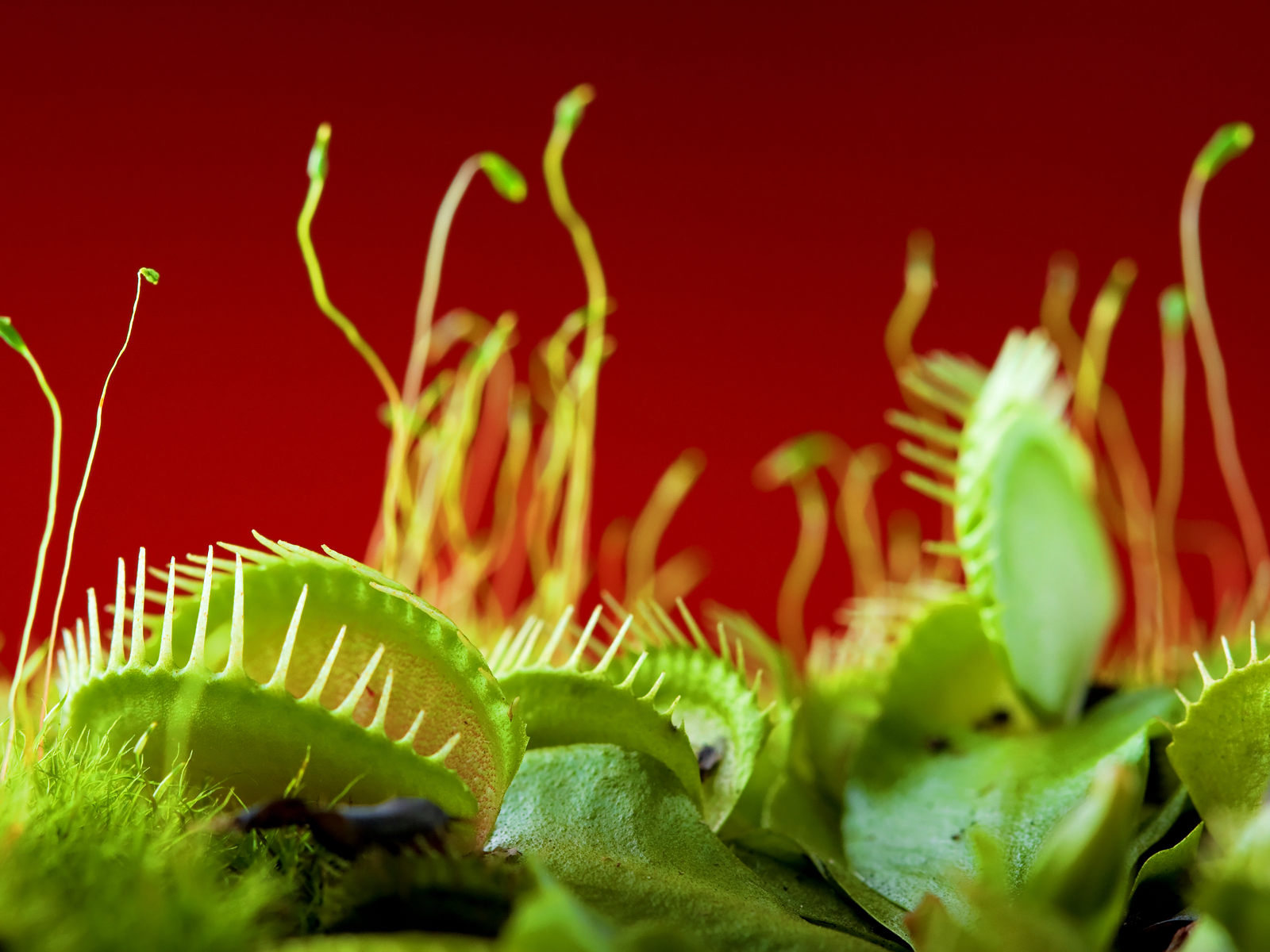 Description: A close up of a plant with leaves and flowers on it's stems and a red background with a red wall.