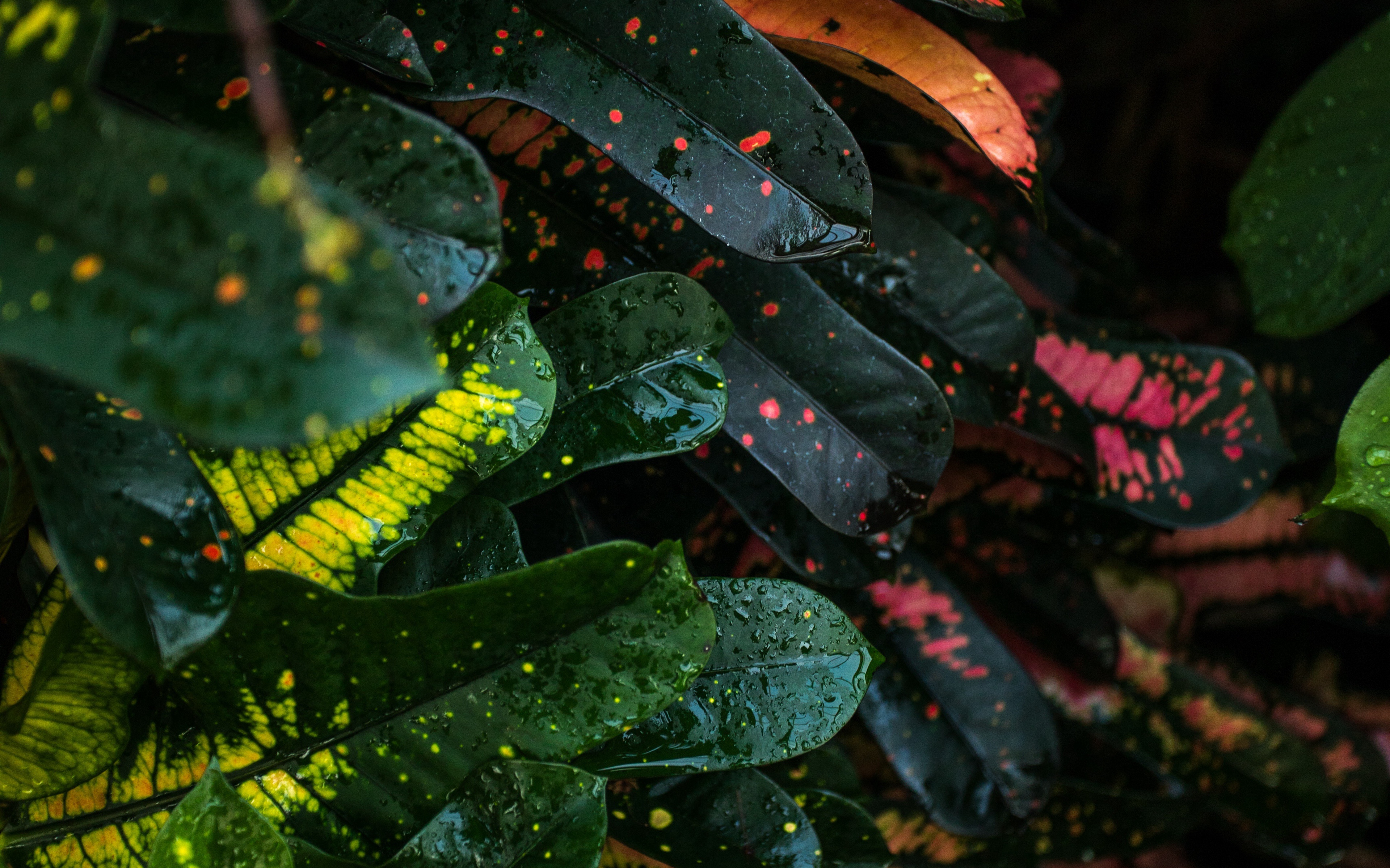 Description: A close up of a plant with leaves and red spots on it's leaves and a yellow spot on the leaves.