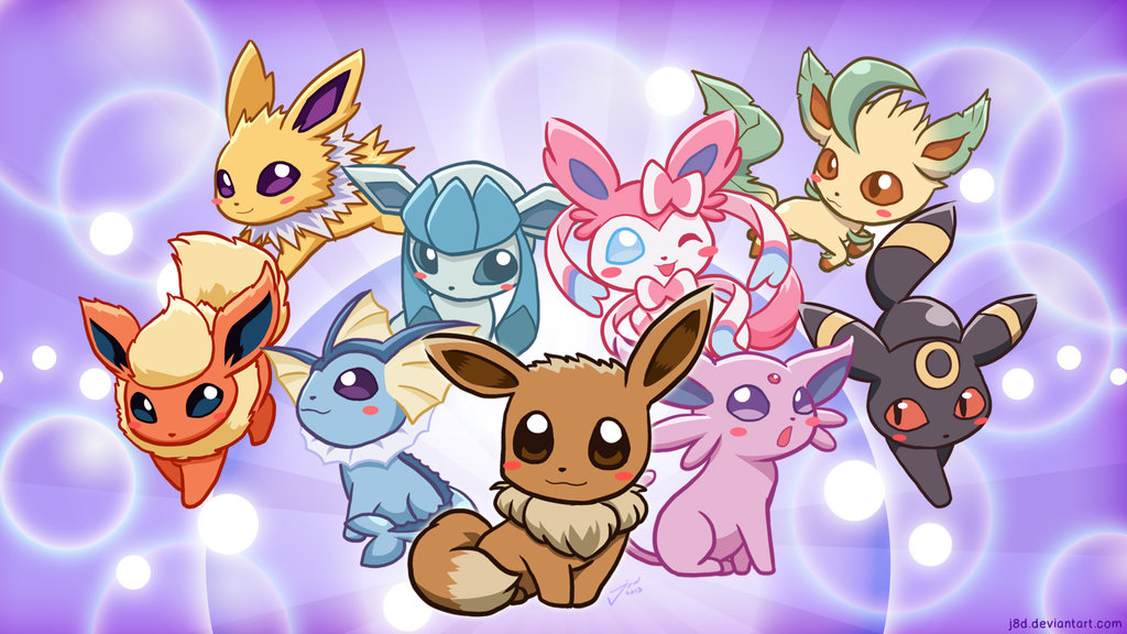 Description: A group of pokemon characters standing next to each other on a purple background with bubbles and bubbles in the background.
